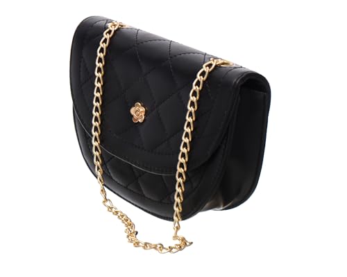 Generic - Faux Leather Small Handbag Modern Design With Metal Long Strap Length Can Be Controlled And Magnetic Clip For Women - Black Gold