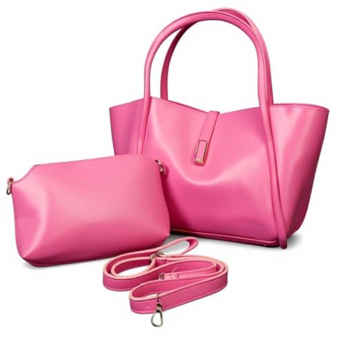 Generic - Faux Leather Women Handbag Set Of 2 Pieces With Shoulder Strap - Pink Black