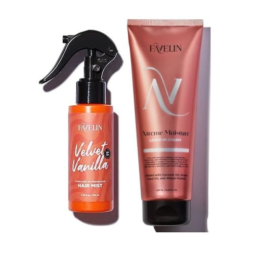 Favelin - Favelin Velvet Vanilla Hair Mist (100 ML) & Xtreme Moisture Leave-in Cream (250 ML) - Hydrating UV-Protectant & Frizz Control | Strengthens