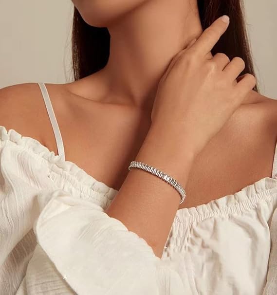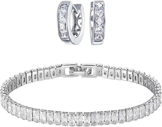 Fayrouz Jewellery - مجموعة مجوهرات مكونة من سوار تنس باجيت واقراط حلقية مطلية بالذهب عيار 18 قيراط للنساء بطول 7 انش، هدايا عيد ميلاد للنساء ويناسب جميع الاشخاص من فيروز جوليري .