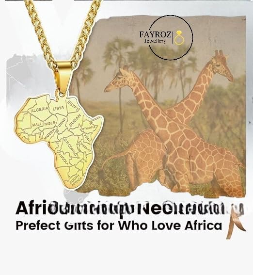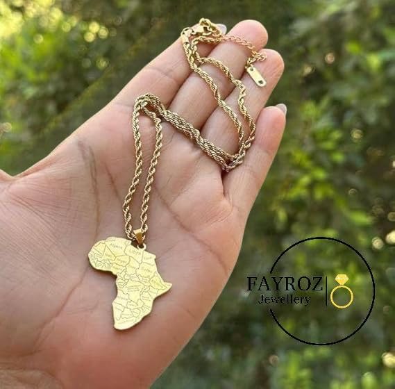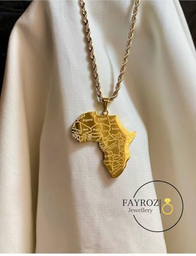 FAYROZ JEWELLERY - Fayruz Jewelry "Africa Map Necklace Made of High Quality Stainless Steel – 18K Gold Plated – Luxury & Elegant Rustproof Accessory for Everyday Looks & Gifts.