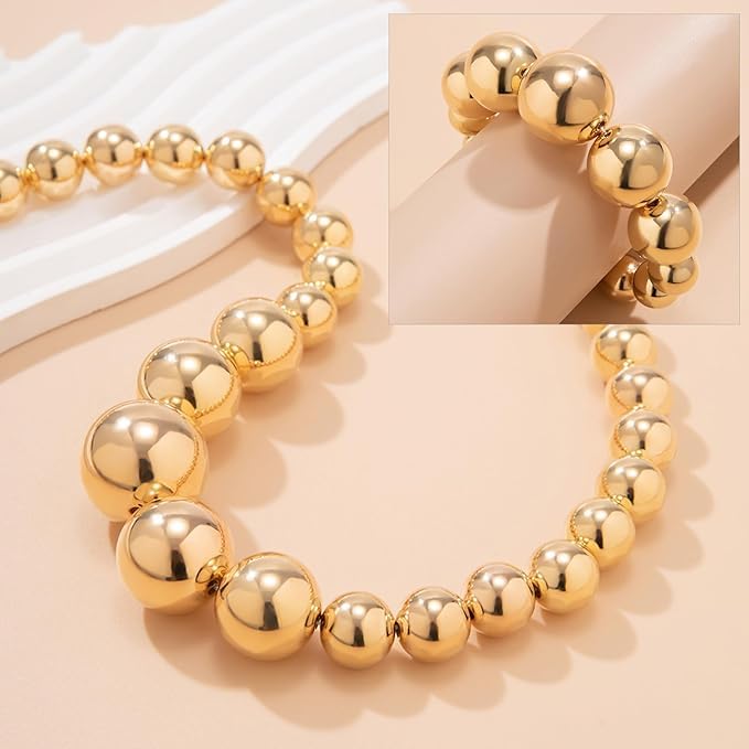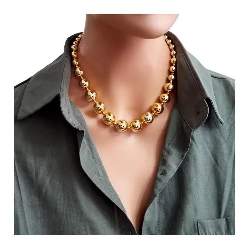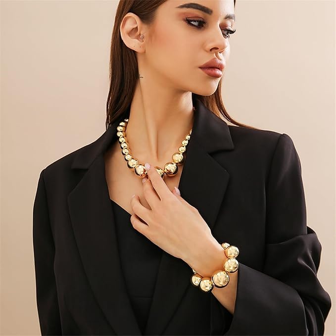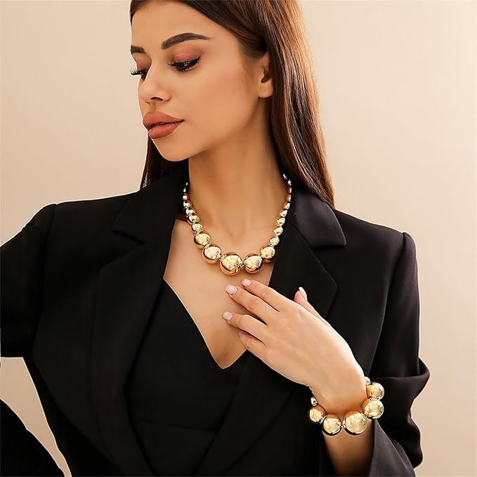Fayrouz Jewellery - مجموعة مجوهرات مكتنزة مكونة من قلادة وسوار واقراط ذهبية مزينة بالخرز الكبيرة للنساء والفتيات . من فيروز جوليري .
