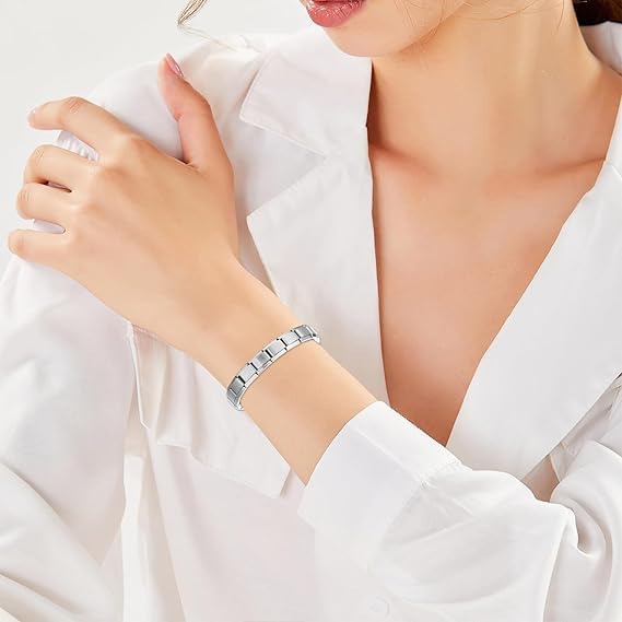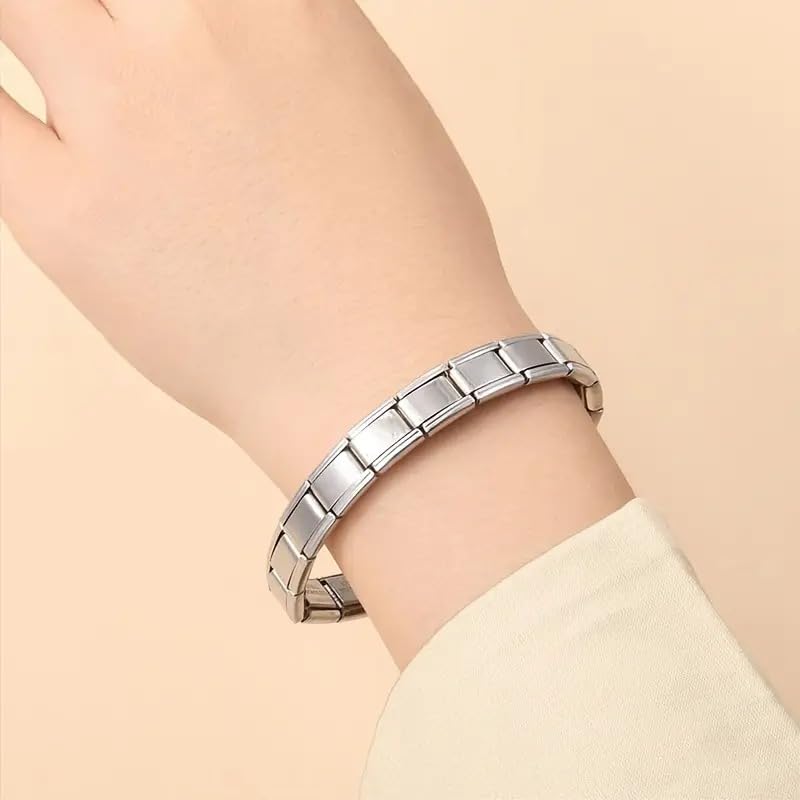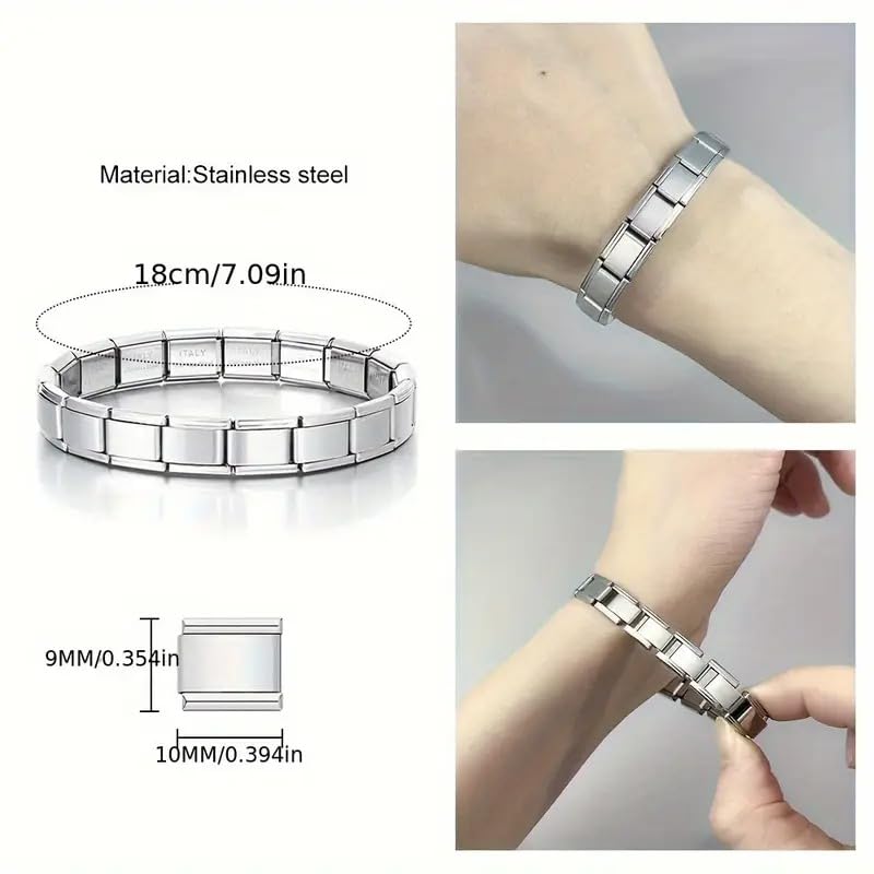 Fayrouz Jewellery - Fayruz Jewelry Italian Stainless Steel 9mm Rubber Bracelet with Assorted Buttons Adjustable Stretch Elastic Bracelets Classic Design Unisex