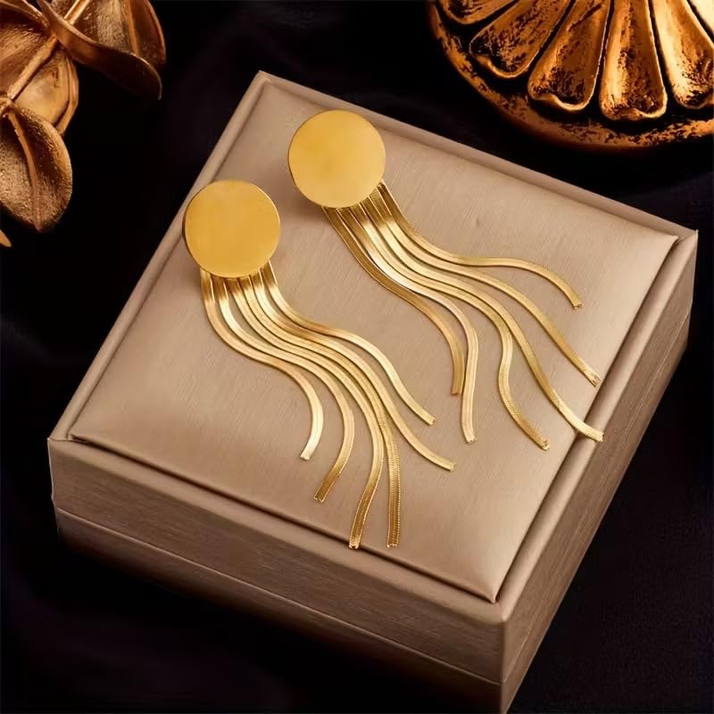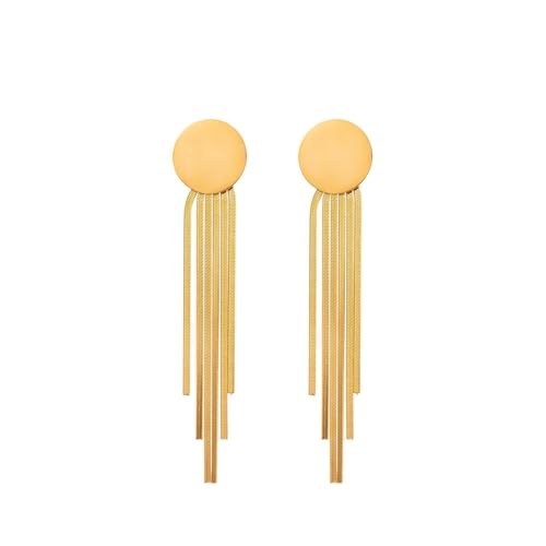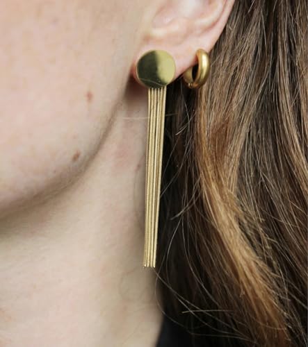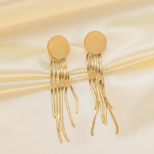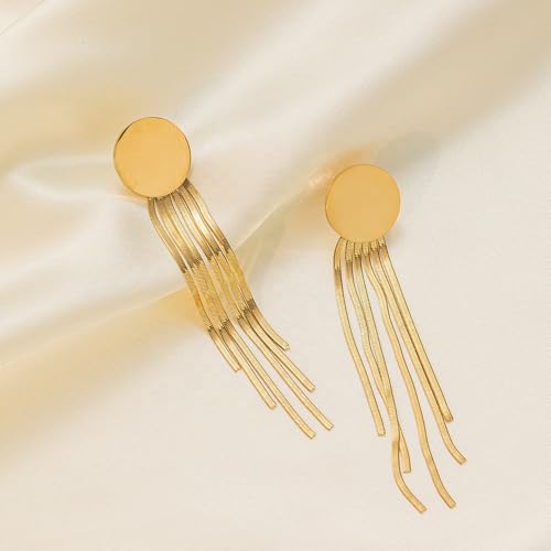 Fayrouz Jewellery - اقراط متدلية طويلة بشراشيب للنساء والفتيات المراهقات، اقراط سلسلة معدنية انيقة بلون ذهبي من ستانلس ستيل مطلية بالذهب عيار 18 قيراط، مجوهرات الزفاف . من فيروز جوليري .