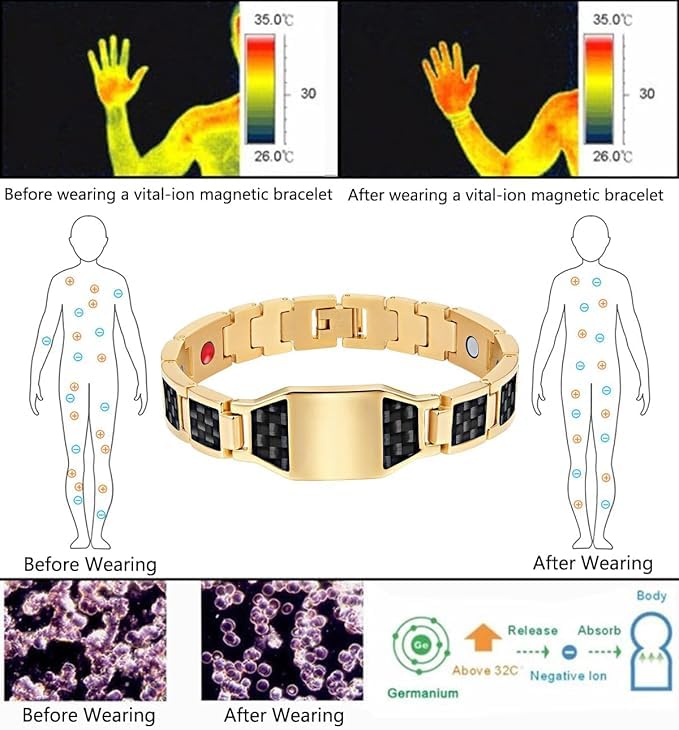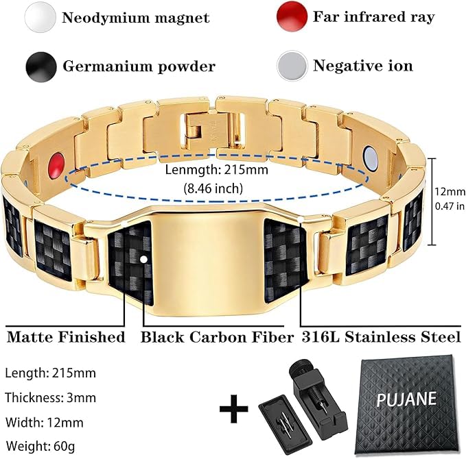 Fayrouz Jewellery - سوار مغناطيس مكون من 4 عناصر من ألياف كربونية تمنح طاقة مغناطيسية قوية للغاية بقوة 3500 جاوس للرجال من فيروز جوليري