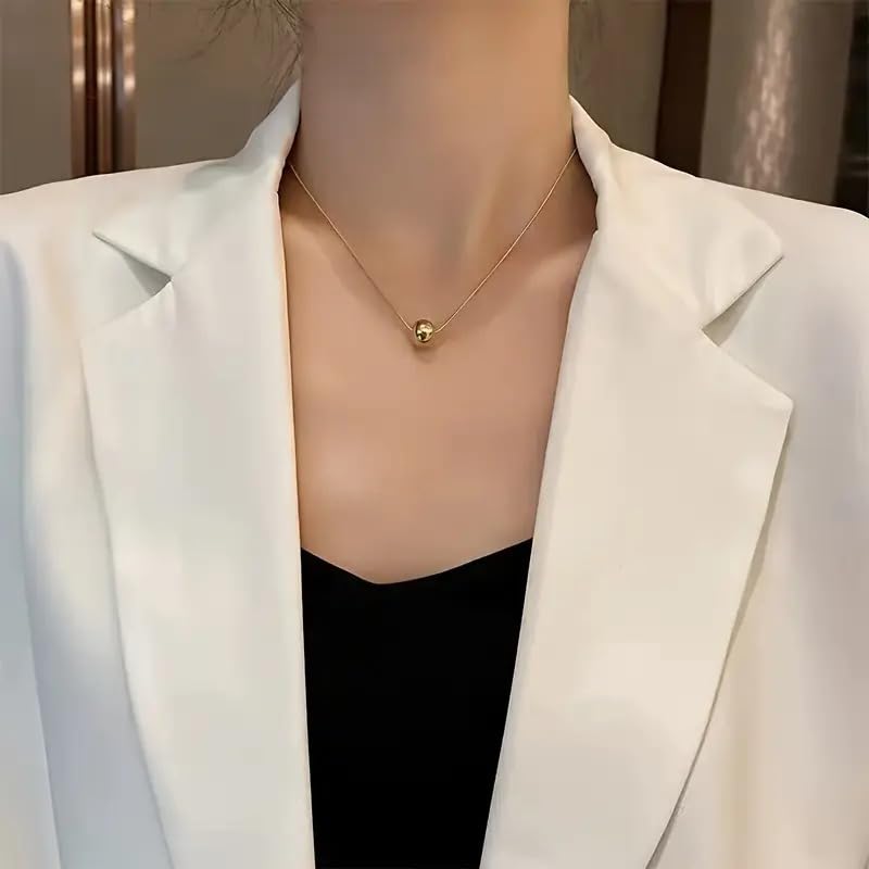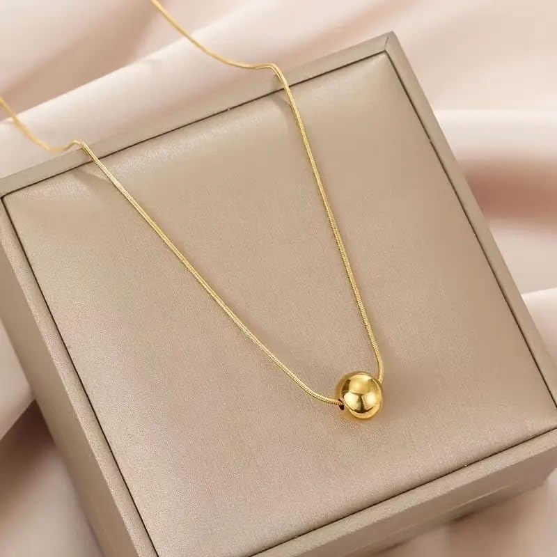 Fayrouz Jewellery - Fayruz Jewelry Simple Ball Pendant Necklace 18K Gold Plated Stainless Steel Ball Pendant Necklace Fashion Party Wear Jewelry for Women Girls - Stainless Steel, No Gemstone -