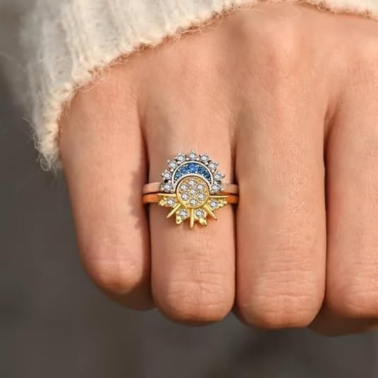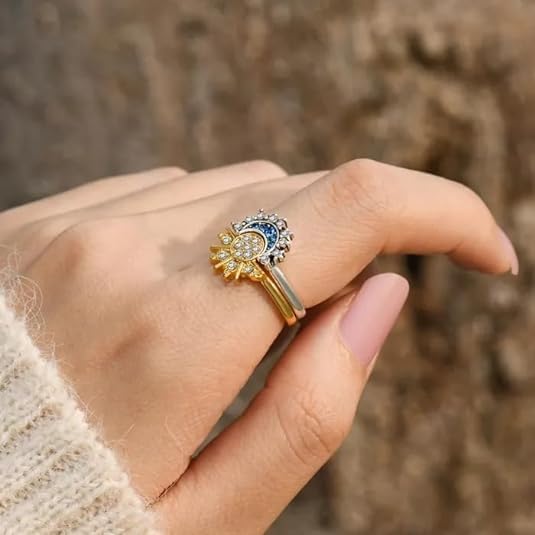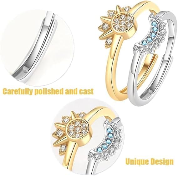 Fayrouz Jewellery - Fayruz Jewelry Sun and Moon Rings Set, Stackable Ring for Women, Matching Adjustable Friendship for Best Friendship, Sun and Moon Stacking for Teen Girls