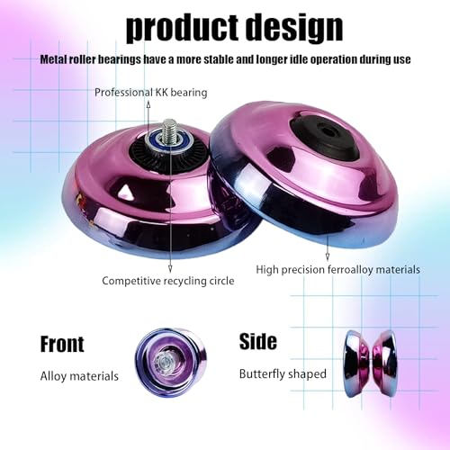 - ماده عالية الجودة: يويو للأطفال بمظهر رائع مصنوع من خليط معدني من الألومنيوم المؤكسد عالي الجودة، السطح ساطع ولا يبهت أبدًا وليس من السهل خدشه. يتميز اليويو المصنوع من الألومنيوم بشكل فراشة وتوزيع محسن للوزن وتتميز بأداء ممتاز