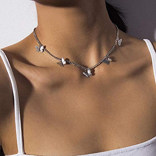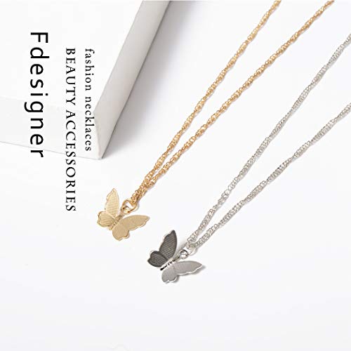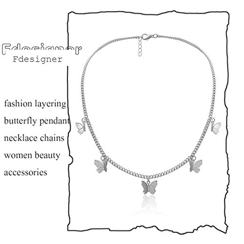 Fdesigner - سلسلة بتصميم طوق ضيق بدلايات متدرجة على شكل فراشة مجوهرات قصيرة بسيط للنساء والبنات من اف ديزاينر لون فضي II