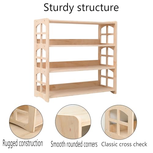 FDHUIJIA - Montessori Bookshelf Toy Shelf Kids Storage Organizer for Toys Book Shelves for Kids Room Sturdy and Safe Toddler Wood Classroom Childrens Bookcases(4Tier)