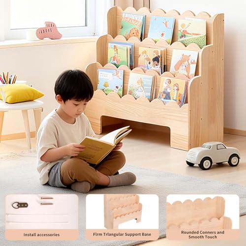 - 【Sturdy Structure】: No shaking, very strong. Our children's bookshelf is made of pine and solid wood