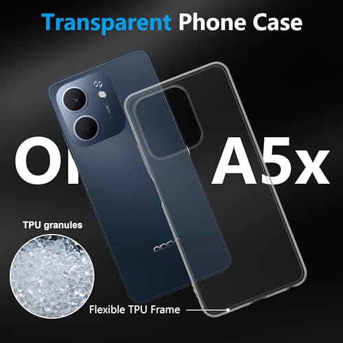 FDHYFGDY - Cover for OPPO A5x 4G/5G Phone Case+1x Protective Film, Anti-Yellowing and Shockproof, Ultra Thin Soft TPU Protective Case-Transparent
