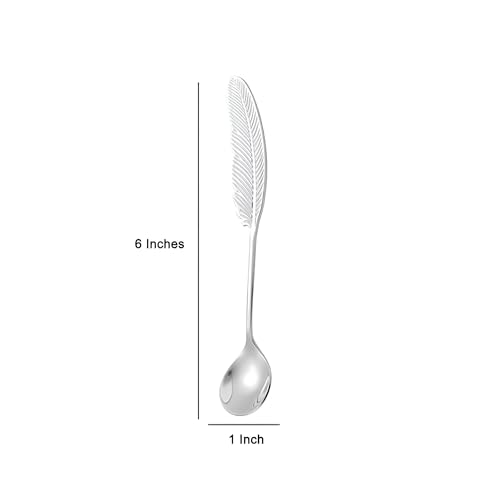 Generic - Feather Spoon - Elegant Stainless Steel Coffee and Dessert Spoon Set with Smooth Handle Design, Ideal for Stirring Coffee, Tasting Desserts, Mixing Condiments, or Serving Ice Cream, Pack of 6 Pieces