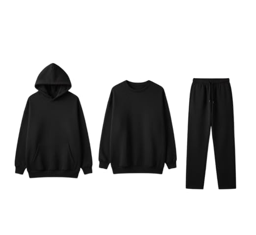 Generic - Feathers Men’s Pack of 3 Piece Winter Set 100% Cotton Oversized Hoodie, Oversized Sweatshirt Crewneck & Sweatpants