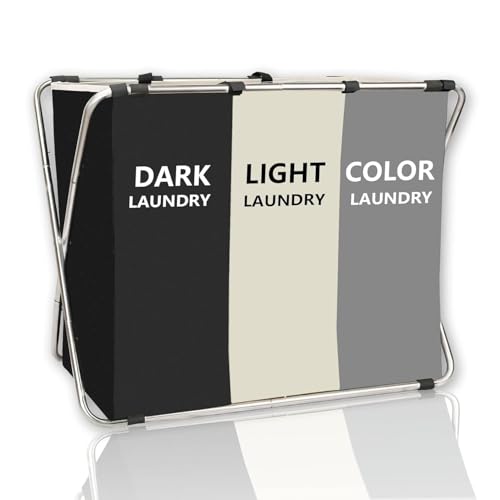 - VERSATILE TRIPLE-COMPARTMENT LAUNDRY BASKET: The folding laundry basket boasts three divided compartments, making it easy to sort dirty clothes by color, textile type, or fabric. This convenient divided compartment design allows you to separate kid clothes, personal items like underwear, and other garments, streamlining your laundry process and keeping everything organized .