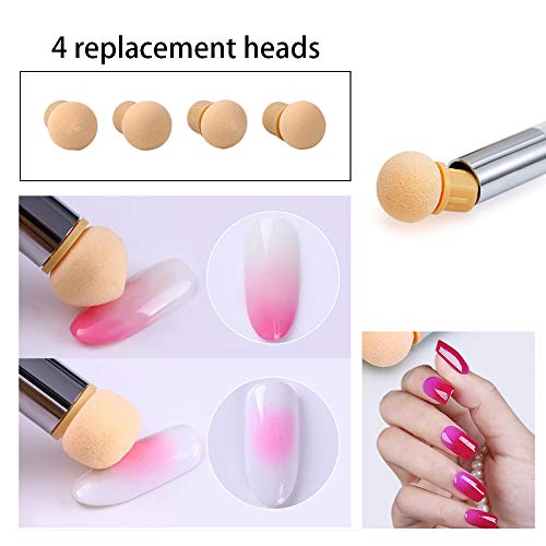 feifeifang - الإسفنج مسمار الفن أداة التدرج القلم الاكريليك مسمار تصميم قلم الرسم مع 4 رؤوس قابلة للاستبدال فرشاة مزدوجة الرؤوس الملحقات الفن الكامل