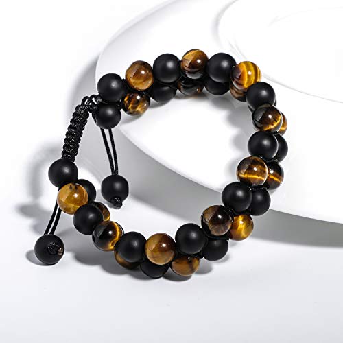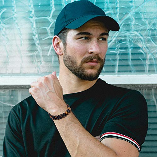 Feilok - Mens Natural Energy Stone Essential Oil Lava Rock Black Onyx Tiger Eye Hematite Beads Bracelet Adjustable, agate Black Matte Agate Lava Rock Tiger Eye Hematite, Agate