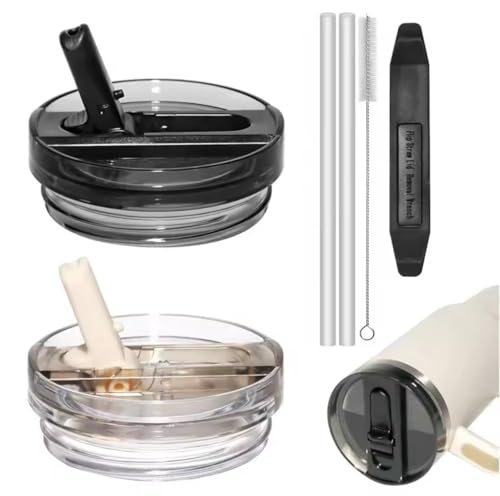 فكرة - غطاء زجاجة بشفاطة علوية قلابة وتصميم مقاوم للتسريب، غطاء بديل لكوب ستانلي كوينشر H2.0 وبروتور تابل بلون مماثل سعة 1.18 ل من فكرة، قطعتين، أسود وكريمي