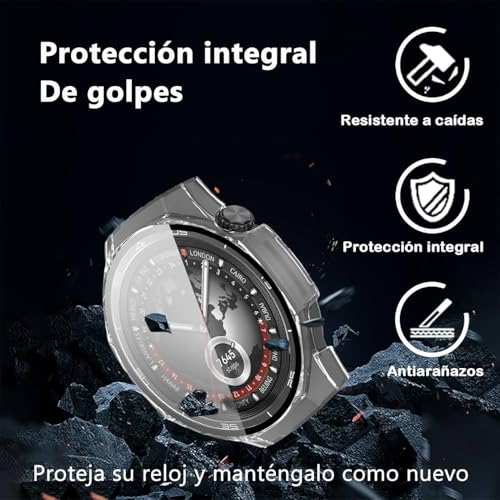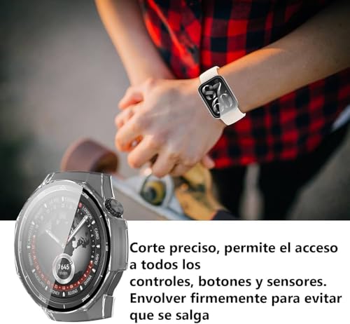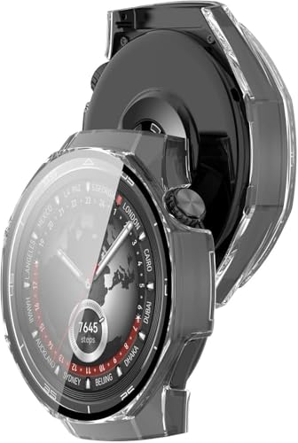 فكرة - جراب مع شاشة حماية زجاج مقوى مضادة للخدش من فكرة، متوافق مع ساعة موبايل هواوي GT5 برو 46 ملم (شفاف)