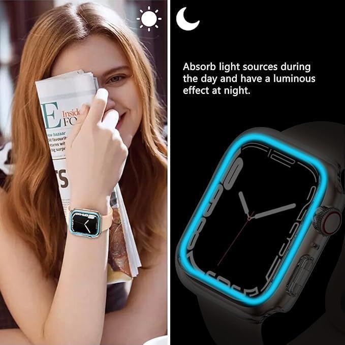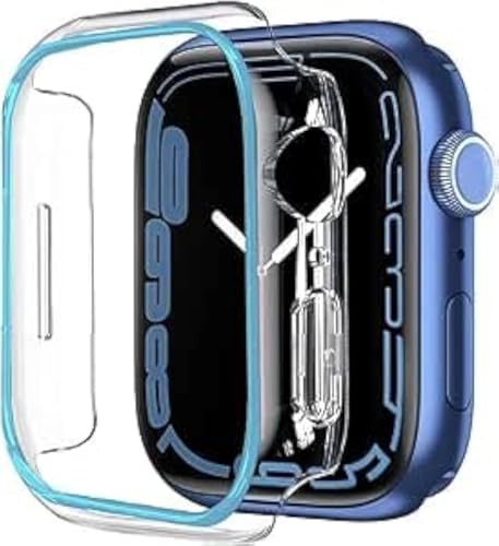 فكرة - حافظة حماية شفافة مضيئة من البولي كربونات فكرا متوافقة مع ساعة ابل 44 ملم واقية فائقة النحافة وممتصة للصدمات لسلسلة اي ووتش 6 5 4 اس ازرق