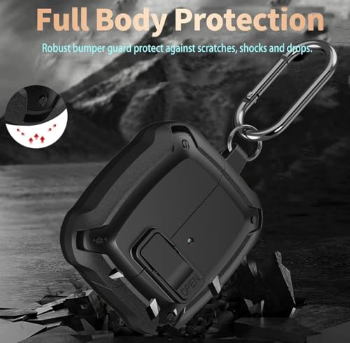 فكرة - فكرة Fekra Compatible with Samsung Galaxy Buds 3 Pro/Buds 3 Case Full-Body Shockproof (Secure Lock) Galaxy Buds 3 & Galaxy Buds 3 Pro (2024) with Carabiner (Black)