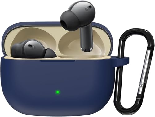 فكرة - جراب سماعة اذن من فكرا متوافق مع سماعات ريلمي بادز T300 السيليكون الناعم ممتص للصدمات سلسلة مفاتيح [مصباح LED امامي مرئي] ازرق T300