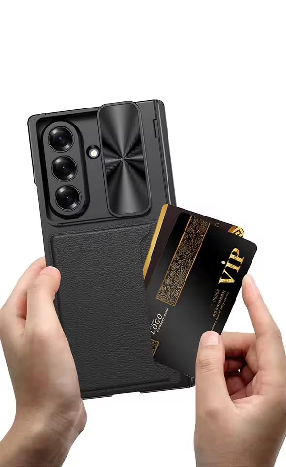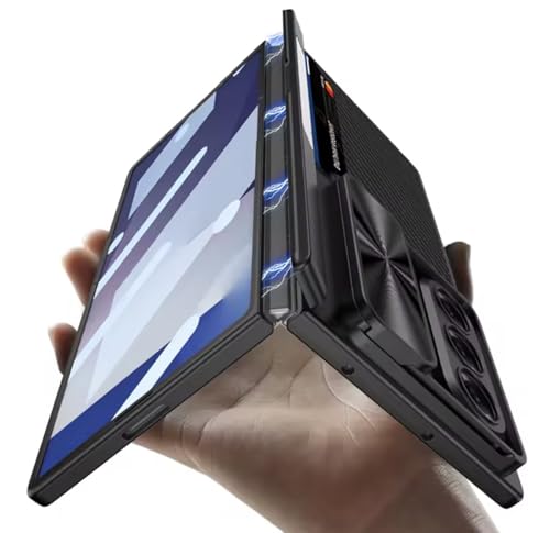 فكرة - حافظة فاخرة من فكرا لهاتف سامسونج جالاكسي Z فولد 7 مع غطاء كاميرا منزلق، حامل بطاقات، حامل قابل للطي، بولي يوريثين حراري + بولي كربونات مضاد للصدمات مع شاشة حماية امامية (رمادي بارد)