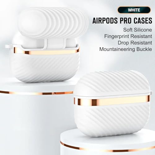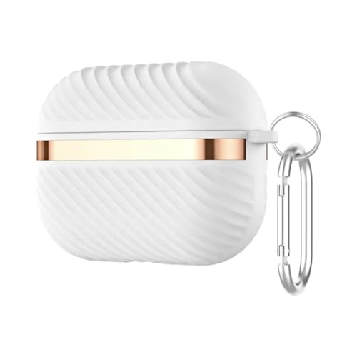 فكرة - جراب حماية فاخر من السيليكون بشريط كروم وخطاف معدني فكرة لسماعات ابل ايربودز برو - 2 اللاسلكية ابيض