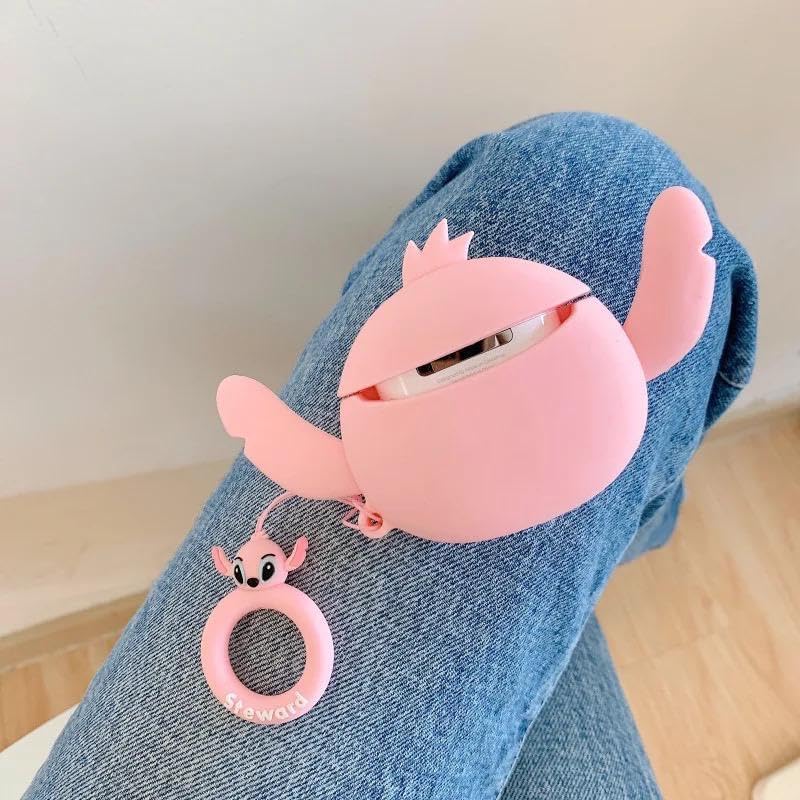 فكرة - Fekra store AirPods Pro 2 Case Soft Silicone Shockproof Cover for Apple Airpods Pro 2nd, New 3D Cute Cartoon Creative Fun Case with Keychain Design For Airpods Pro 2nd (stitch pink)