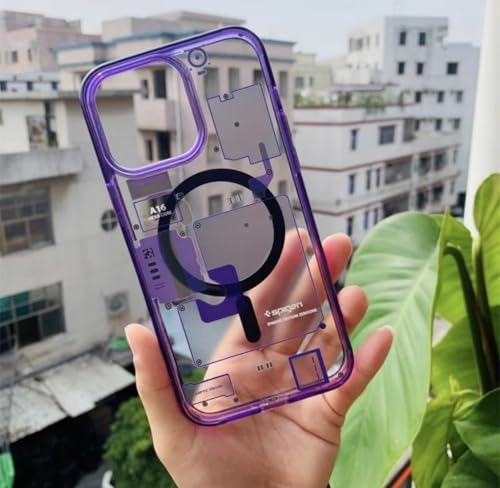 فكرة - Fekra Ultra Hybrid (MagFit) Transparent Matte Case Designed for iPhone 14 Pro max/iPhone 13 Pro Max cover [Anti-Yellowing Technology] Case (Purple, iPhone 14 pro max)