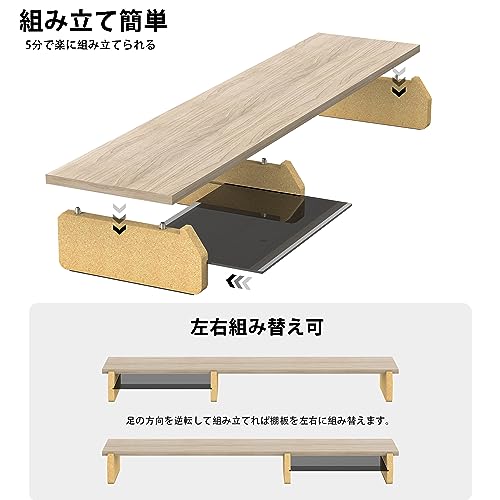 - (Can be reassembled left and right) The shelves on the monitor stand can be rearranged to either the left or right depending on your usage habits. By reversing the direction of the foot, you can assemble the shelf board from left to right