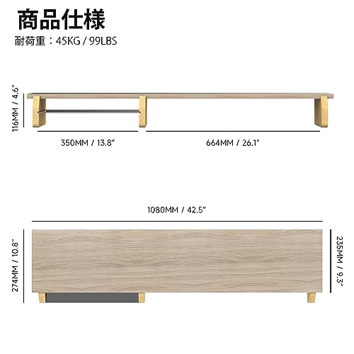 Fenge - Fenge G04B1103C Desktop Stand, Monitor Stand, 42.5 inches (108 cm), Wooden Tabletop, PC Stand, Desktop Stand, Desktop Rack, Desktop Stand, PC Monitor, Computer Rack, Tabletop, Storage, Organization,