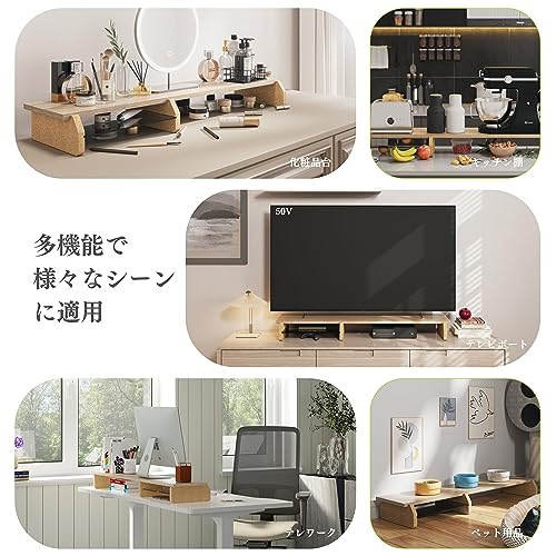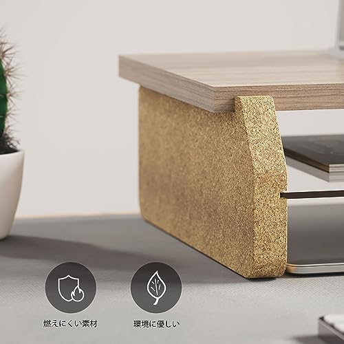 - (Eco-friendly Materials, Safe and Secure) Unlike the other monitor boards we sell, our feet made from cork are environmentally friendly and will not only reduce the pain caused by impacts, but it also prevents slippage and supports the tabletop firmly and stable. The top board is made of particle board, so even if there is water or dirt, simply wipe it off
