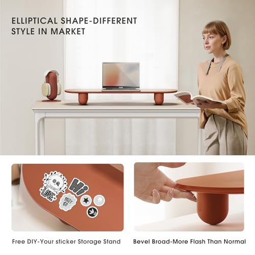 - 【Streamlined Aesthetic】Featuring rounded legs and a smooth oval panel, the Fenge monitor stand delivers minimalist elegance. Unlike basic black, white, or gray tones, this brick red adds a vibrant touch to modern offices, gaming setups, or creative spaces, bringing a pop of color to your desktop.