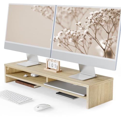 Fenge - فينج حامل شاشة، حامل كمبيوتر مكتبي، رف مكتب، حامل شاشة، حامل شاشة، 2 طبقة، خشبي، عرض 31.5 انش (80 سم)، حامل شاشة، حامل للكمبيوتر، رف مكتب، حامل مكتبي، حامل عرض