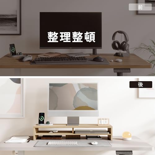 - [حامل شاشة فينج لسطح الطاولة المنظم بدقة] يحتوي حامل الكمبيوتر على طبقتين والطبقة العلوية مقسمة إلى جزأين، حتى تتمكن من تخزين العناصر لكل نوع. تنظم مساحة التخزين السفلية لوحة المفاتيح والماوس والأجهزة الطرفية الأخرى وتمنحك مساحة أكبر على مكتبك