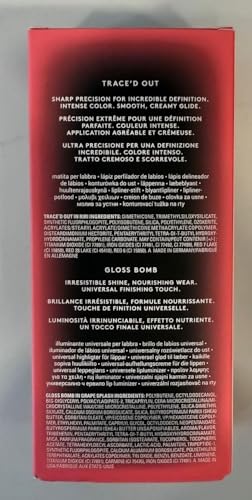 • Fill Weight: Gloss Bomb Universal Lip Luminizer: 0.3 oz/9 mL. Trace'd Out Lip Liner 1.24g/0.044 oz.