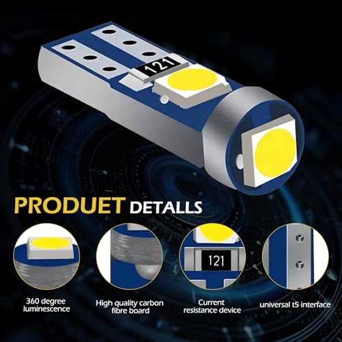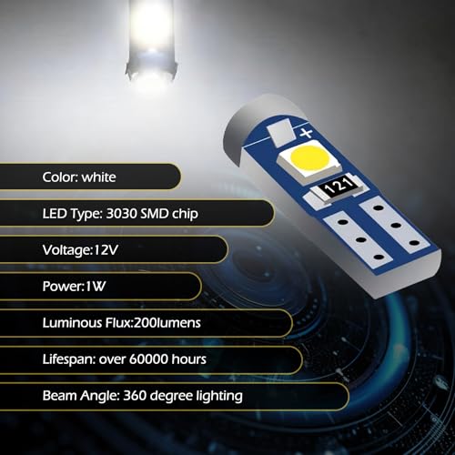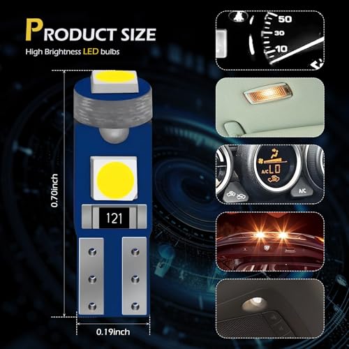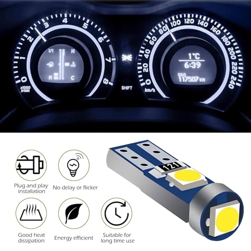 - High Brightness: The dashboard bulb has 3 powerful 3030 SMDs, 1 LED facing up and 2 LEDs spreading light to both sides, 12V, super bright, pure color and even illumination, which provides excellent illumination and allows you to see the dashboard even during the day.