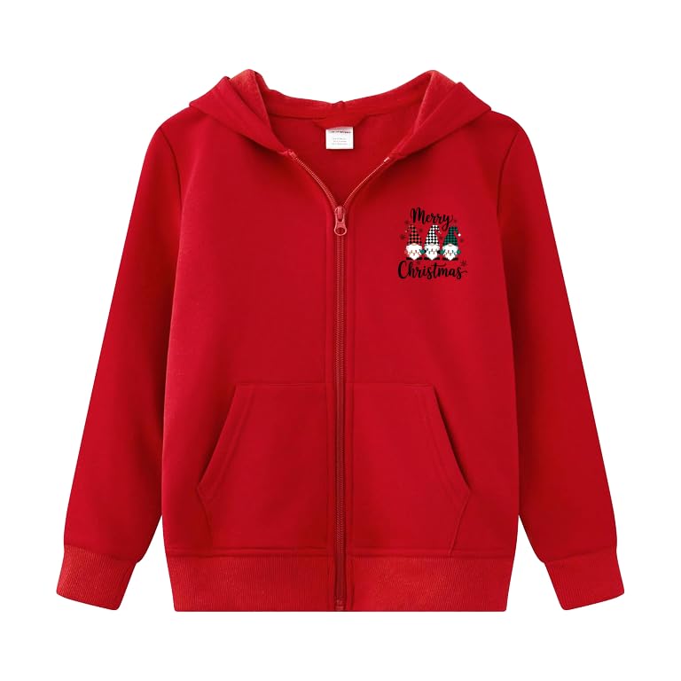 Generic - Festive Christmas Hoodie, RED Cotton Blend Sweatshirt with Gnome Print, Holiday Winter Pullover(3-6Y)