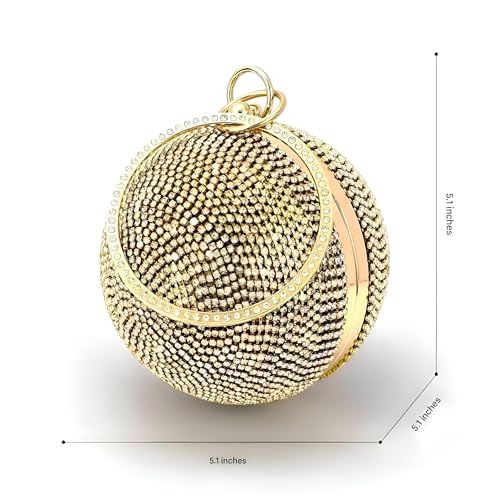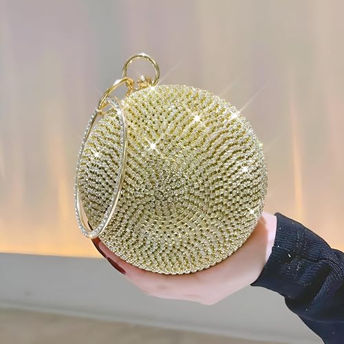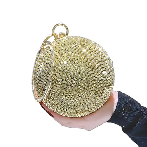 Generic - Festive Clutch - Stylish shiny evening bag in a round shape for weddings, decorated with rhinestones and featuring an eye-catching loop handle.
