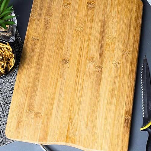 festive - لوح تقطيع من الخيزران الفاخر كبير جدًا من فيستيف، لوح تقطيع خشبي للمطبخ مع أخاديد عصير خيزران طبيعي 20×30 سم
