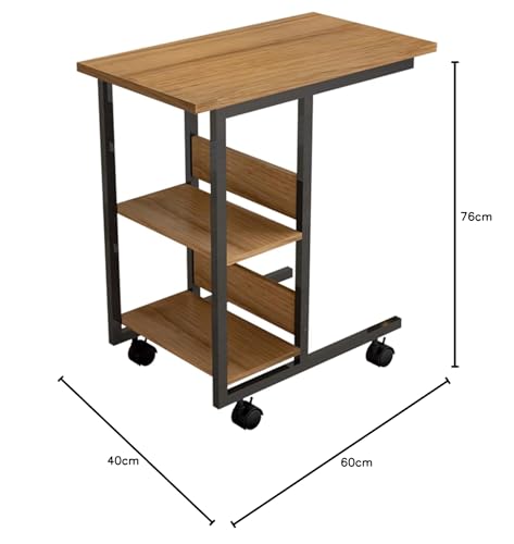 Festnight - Festnight Modern Rectangular End Table, Brown, 76 cm x 41 cm x 61 cm, Wood & Carbon Steel, Storage, Rust Resistant, Wheels with Brakes