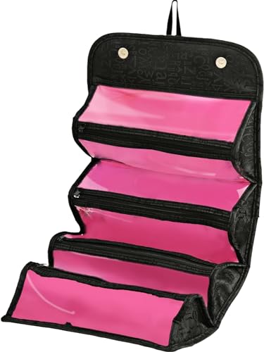 - The Roll-N-Go cosmetic bag holds everything in 4 separate spacious zippered compartments.