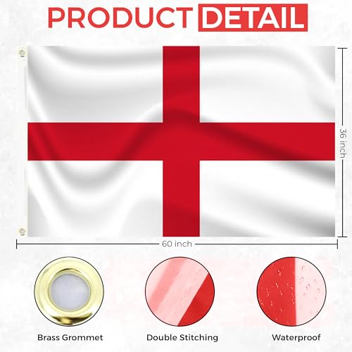 - Size & Design: Large 5ft x 3ft England flag featuring the bold red and white St George’s cross
