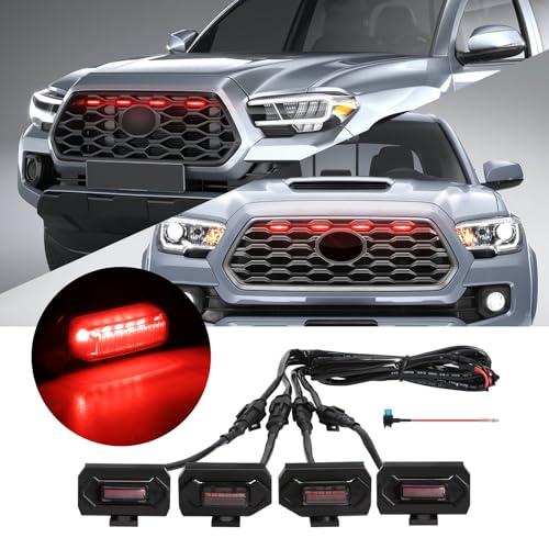 FICOLPO - 4 Pcs Tacoma Grill Lights Compatible with Toyota Tacoma 2020 2021 2022 2023 TRD Off Road and Sport Models, OEM Style Tacoma LED Front Grille Lights Accessories with Fuse & Harness (Red)