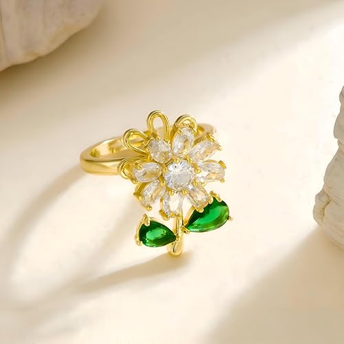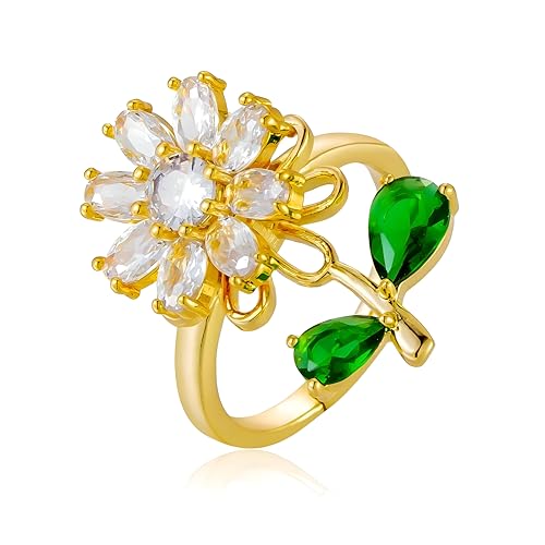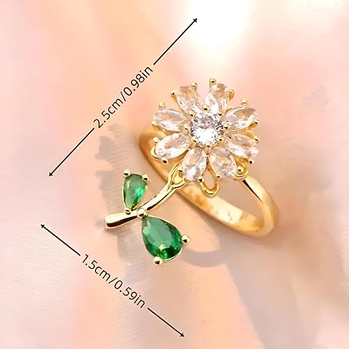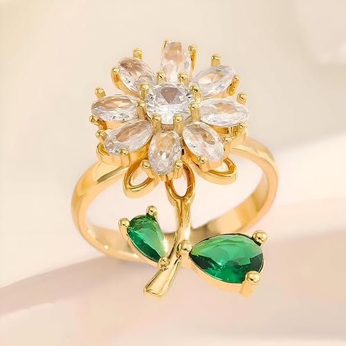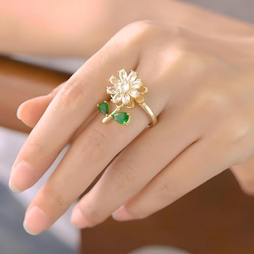 Generic - Fidget Anxiety Relief Ring - Unique Adjustable Flower Spinner Ring for Women Featuring Elegant Green Leaf Charms, Crafted from Durable Stainless Steel for Customization