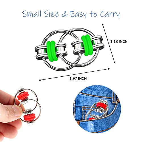 - Fidget Toys for Widly Uses: Tomwell stainless steel bike chain sensory fidget toys are suitable for kids and adults, they can be taken to the classroom, the office, the plane, and fit for using in classrooms, offices, conferences and other occasions. These bike chain fidget toy pack contains 4 pieces key chain rings with 2 red flippy chains and 2 green flippy chains