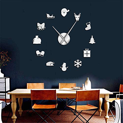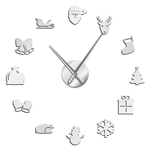 FIDMEK - FIDMEK Wall Clock Christmas Time Diy Wall Art Large Wall Clock Merry Christmas Holidays Home Decoration Hanging Timepiece Frameless Big Wall Watch