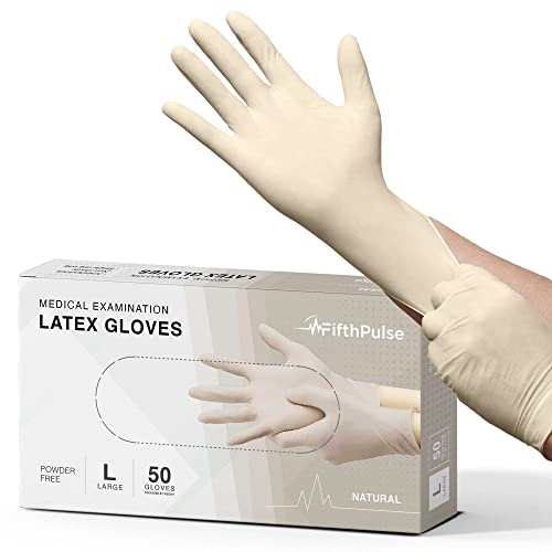 FifthPulse - FifthPulse Medical Examination Latex Gloves - Extra Thick 4.5 Mil, Natural Color, Powder Free Disposable Gloves