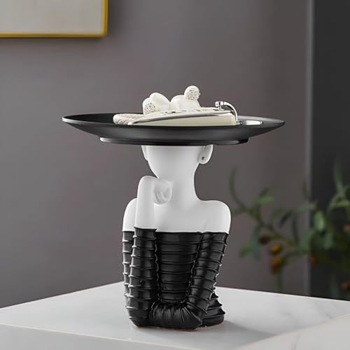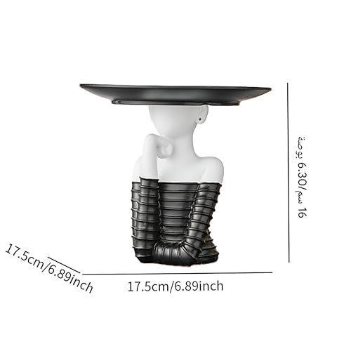 Generic - تمثال - تمثال امرأة تحمل صينية من الراتنج المزخرف، منحوتة فنية لغرفة المعيشة أو ديكور المكتب أو هدية الانتقال إلى منزل جديد، بلونين أبيض وأسود